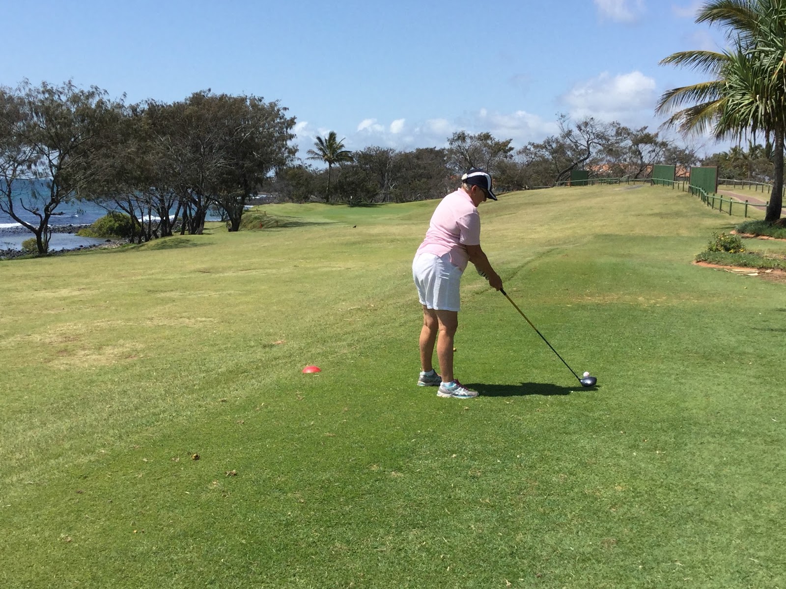 | Shona teeing off on No 2 Coral Cove Golf Course where "Wayne's Rock" is. Thomo that is. |